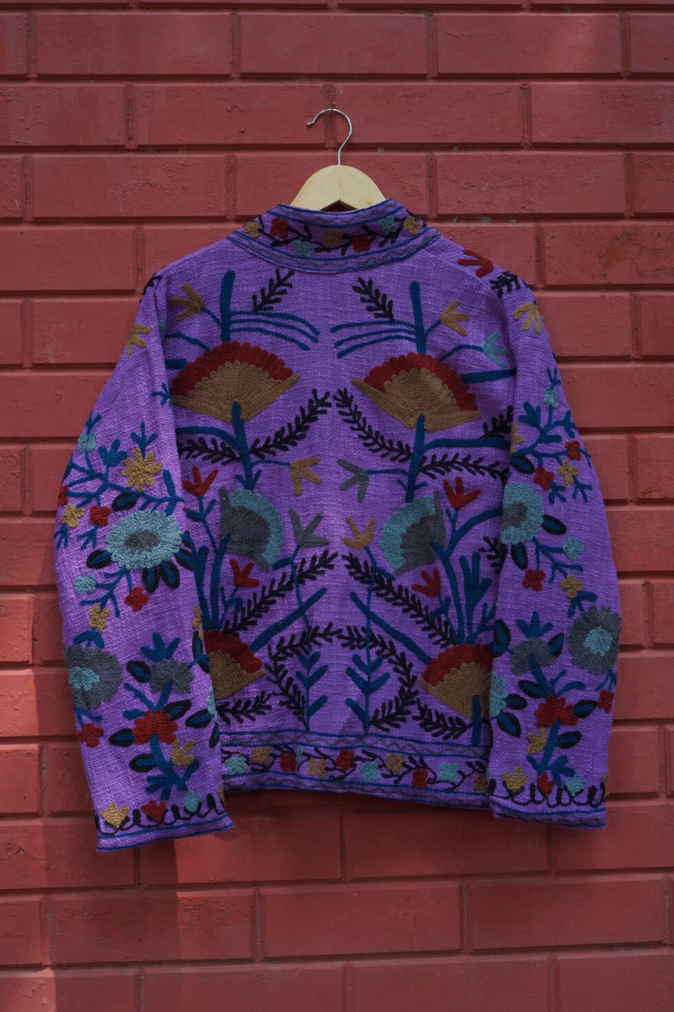 Luxurious velvet jacket featuring intricate Suzani embroidery. Perfect blend of elegance and tradition โ€” ideal for festive and ethnic occasions.